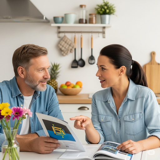 In einem fiktiven, mit Hilfe einer KI erstellten Gespräch unterhalten sich eine Frau und ein Mann am Küchentisch über die vier Perspektiven auf Geld. Das Audio ihrer Unterhaltung kann hier angehört werden: